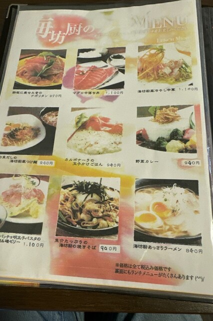 で、メニューの中から魚介たっぷり海坊厨焼そばを注文