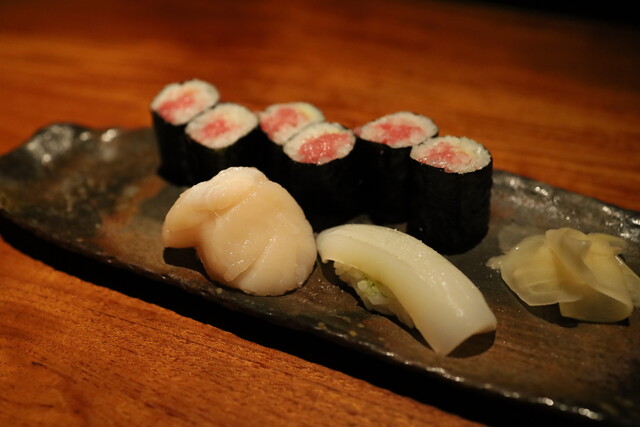 大間のまぐろ赤身一貫、中トロ一貫が組み込まれる。