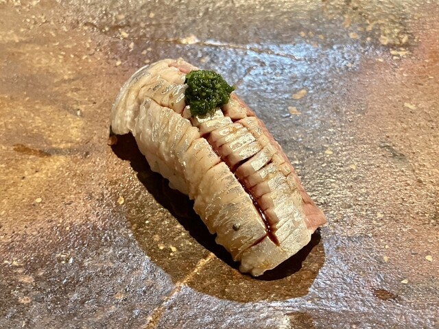 青森出張編の続き、平日の直前電話予約でカウンター席を確保。店内は落ち着いた雰囲気て、期待がふくらむ。まずは、青森地酒の田酒山廃仕込で喉を潤す。辛さ控えめ、すっきりした喉越しがいいね。お通しは、白子とシメジの煮付け。 頼んだのは、地魚の握りをお任せで。津軽半島日本海側産の石なぎは、狙って漁れるわ... 詳細を見る