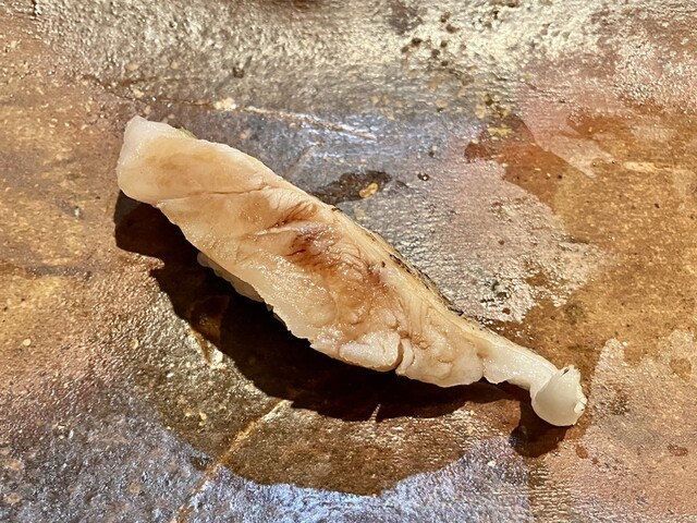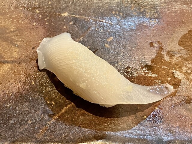 ご主人はタネの産地を地図で示してくれ、まさに近海の地魚。石なぎと同じ海域産の甘エビは、大きめで味わいが濃厚。陸奥湾産のホタテは、旨味と歯触りが好バランス。