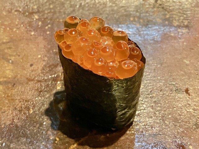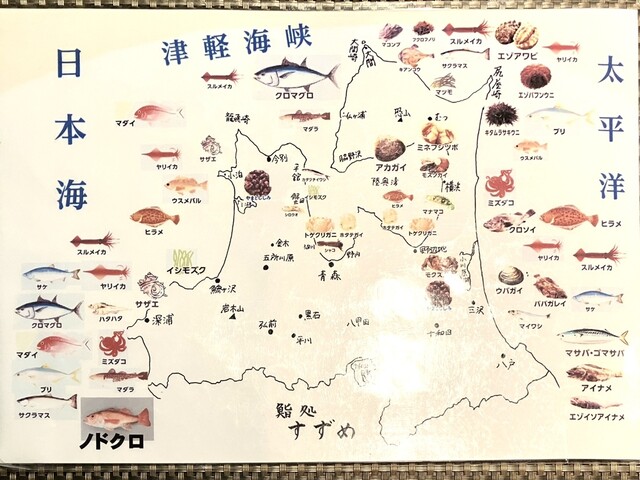 待ってましたの大間産のマグロ赤身は、しなやかで酸味と旨味が好バランス。中トロは、ウマいけど繊維感が少し残る。イクラはフツーかな。槍イカは津軽沖産だけどフツー。〆の下北半島全域産の紫ウニは濃厚。さらに、のどくろを追加、北限の深浦産で脂気と旨味のバランスがいい。