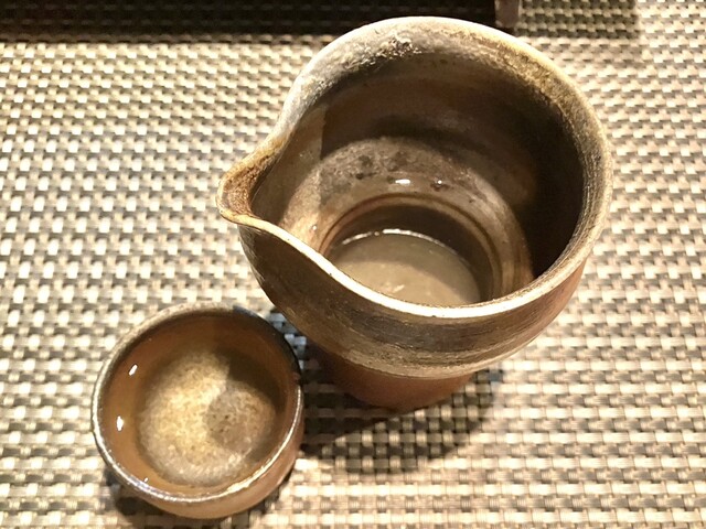 青森出張編の続き、平日の直前電話予約でカウンター席を確保。店内は落ち着いた雰囲気て、期待がふくらむ。まずは、青森地酒の田酒山廃仕込で喉を潤す。辛さ控えめ、すっきりした喉越しがいいね。お通しは、白子とシメジの煮付け。