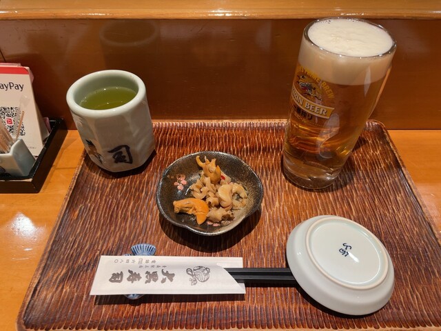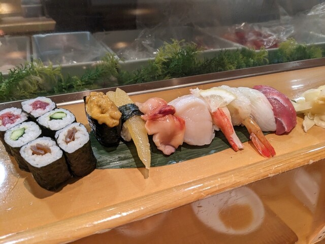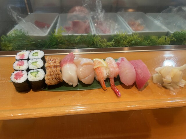 仕事を終えて東京に帰る前、前日は我慢した生の魚介類を食すべく、こちらでサクッと握り寿司をいただくことにしました。