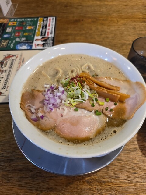 濃厚でありながらも後味はすっきりとしたデス煮干しラーメンの大盛りをいただきました。塩分はやや強めですが、それがまた食欲をそそります。人気店のため混雑時は相席が必須でした。 ... 詳細を見る