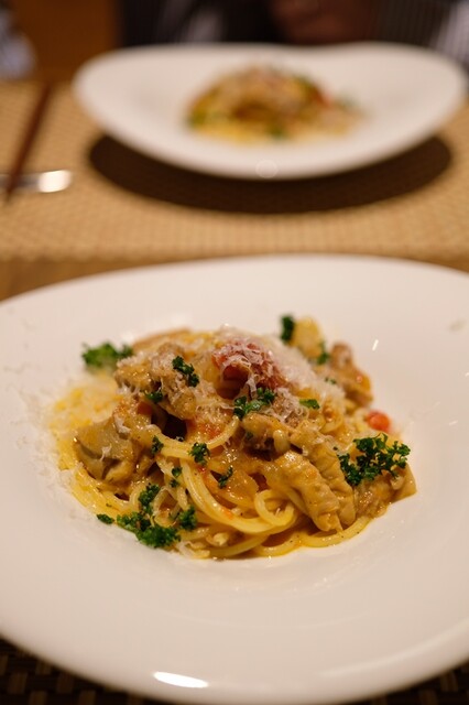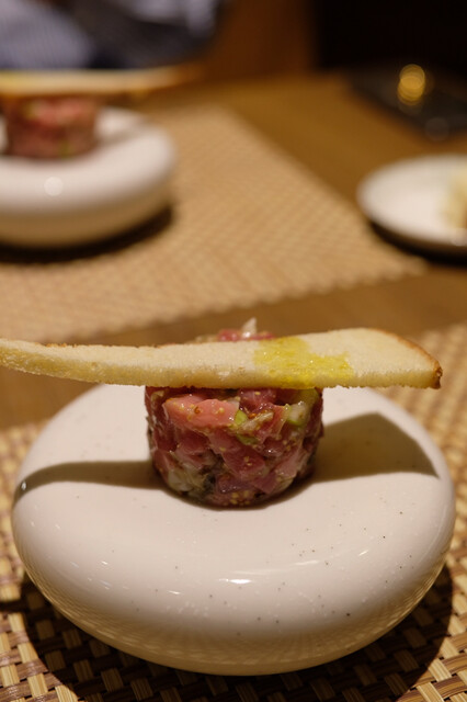 休日ディナー利用。 コースを予約して来店したが、タイミングが良く、他客は店内にいなかった。店内は縦長の線形で、オシャレな内装にムードは高まる。 コースとしては、 ・サラダ... 詳細を見る