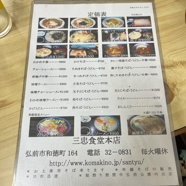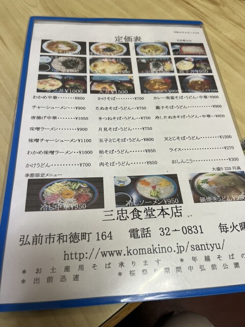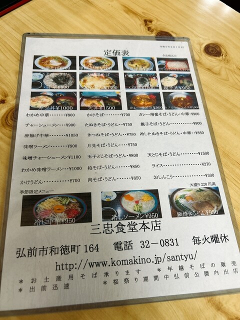 弘前市大字和徳町164の「そば処三忠食堂」さんです。