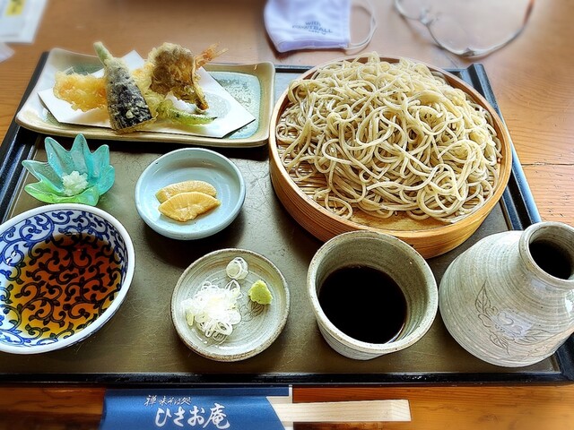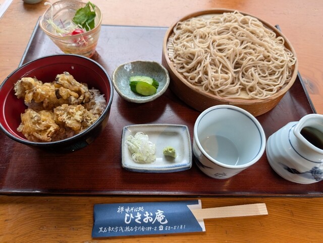 メニューはちょっと思ってたよりお高くて、舞茸天丼とお蕎麦のセットを頂きました。