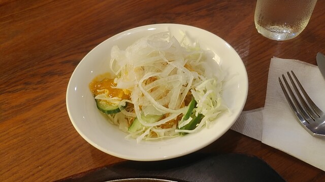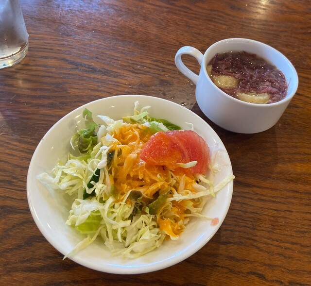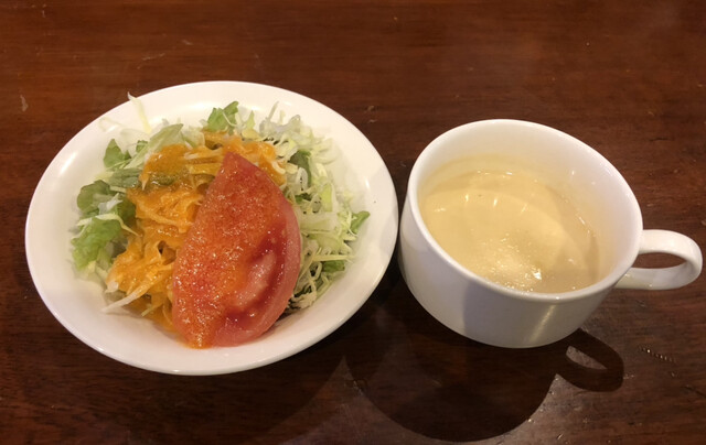ランチメニューは3種類のみ、ハンバーグランチで1400円、今回はガーリックステーキランチ1800円を注文しました。