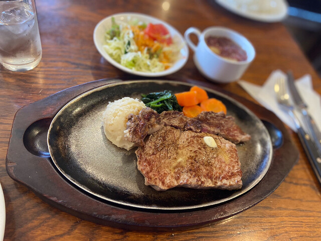 昔から通っているステーキ屋さん カウンターとテーブルがある小さめの清潔感がある店内です 今日はランチ訪問 ステーキランチ1,500円(レア焼きで注文) もーーおいしい ... 詳細を見る