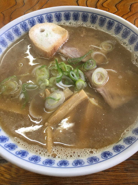 スープは見るからに煮干がガツンと効いた一杯ですが、意外とシャバ系で、煮干の旨味を豚骨?と思われる動物系白湯が下支えしているバランス...