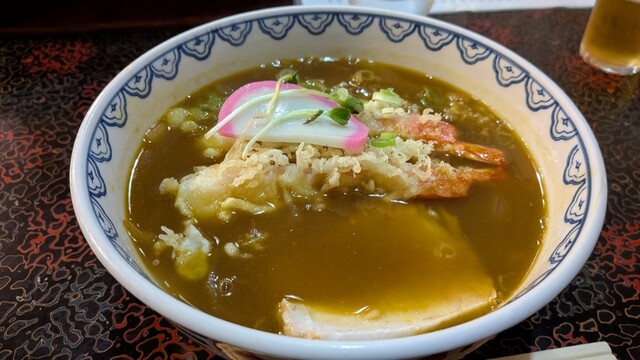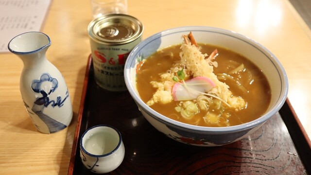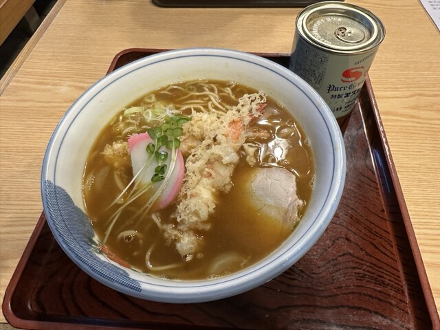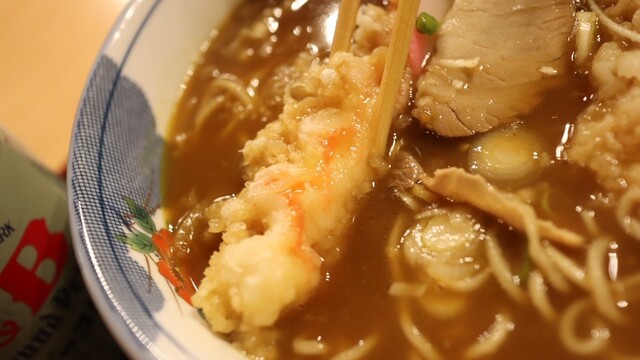 お財布がホクホクな時は、天カレー南蛮!海老の天ぷらが載った、高級?カレー蕎麦!