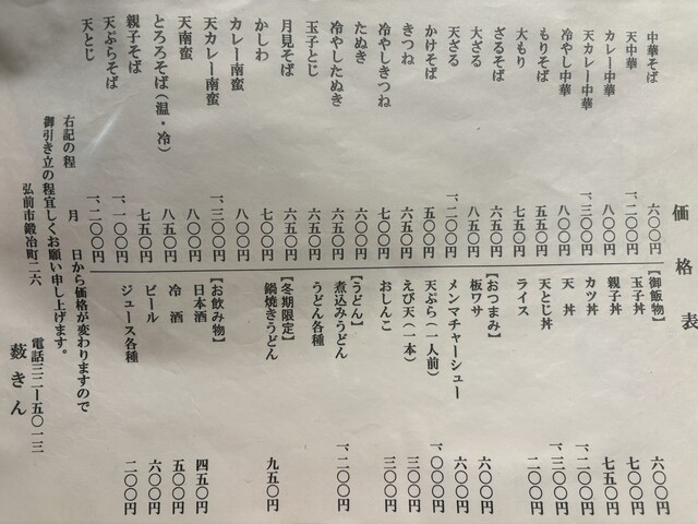 弘前 鍛冶町の〆のおそば屋さん(でも毎回ラーメンを食べてしまう)