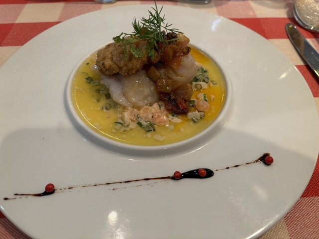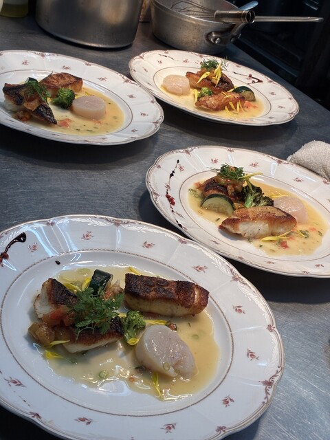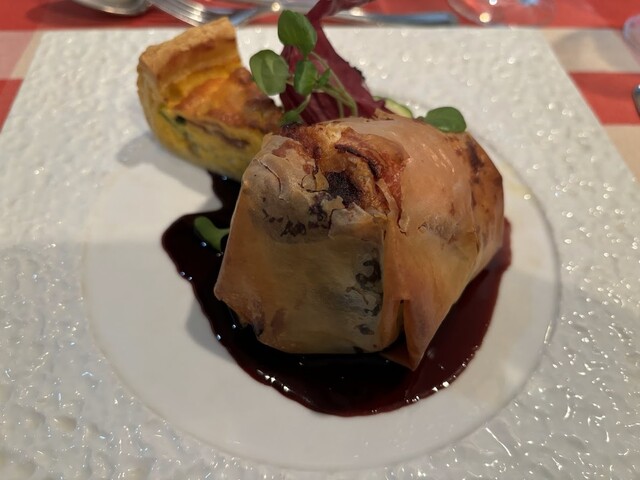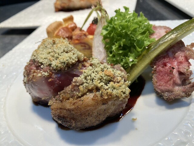 ■Cランチ¥4,400 (一口前菜)生ハムとクリームチーズのパイ (オードブル)生ハム・エスカルゴ、豚肉のパテ、ニシン、いちご、ピクルス (本日のポタージュ)雪中にんじんのポタージュ (本日のお魚料理)たらと白子 (選べるメインディッシュ)青森県産牛ほほ肉とりんごのフィロー包み焼き+¥77... 詳細を見る