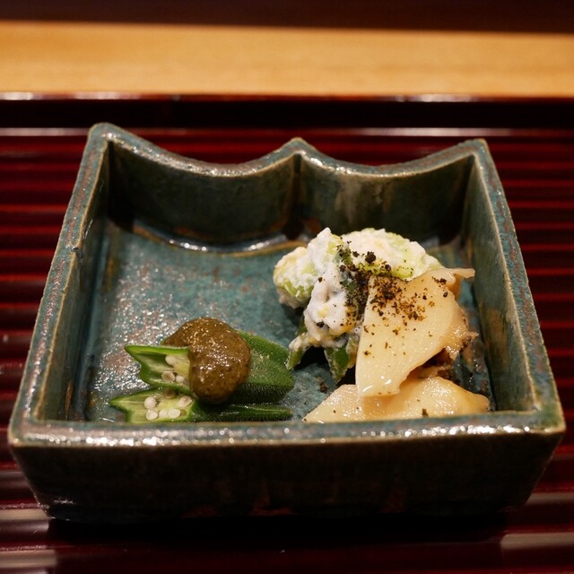 フランスで研鑽を重ねたのち和食へと舵を切った成田陽平氏は、青森の“日常の味”に静かに光を当てる料理人だ。畑や山から届く素材の息づかいを損なわず、そこに潜む豊かさをすくい上げる。スペシャリテは置かず、日ごと移ろう土地の表情こそがコースの軸。オープンキッチンから生まれる一皿は、どこか懐かしく、それでいて新しい。華美に走らず、食材の機微をてらいなく皿へと落とし込む──その一手にこそ、成田氏の矜持が宿る。