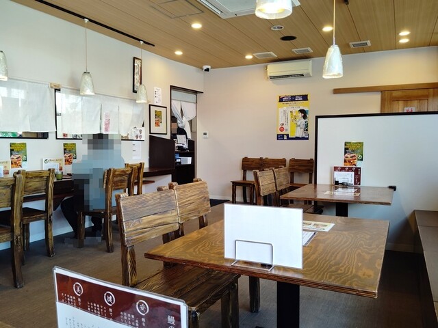 この日は平日で少し遅めの昼。退店する方々と入れ替わりで入店。風除室にはウェイティング用の椅子が数脚。お店のドアを開けると案内係の方がお出迎え。人数聞いて席へ案内。カウンター、小上がり、テーブルの構成で空いている...