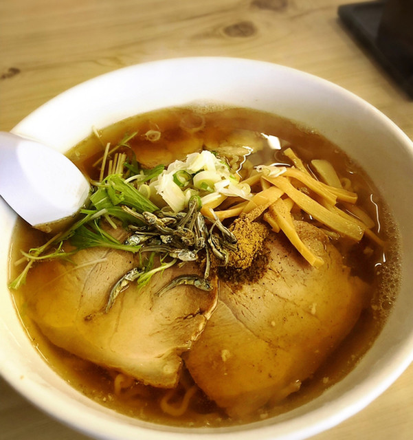 スープは胡麻の香りがあるピリ辛スープで、スープ自体はあっさり醤油清...