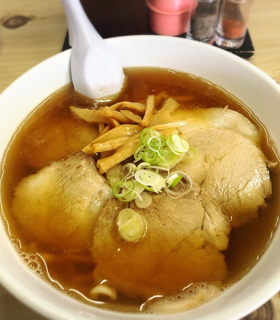 平川市にある老舗食堂の味の香園さんを初訪問。店内はほぼ満席で休日なので家族連れが多く人気があるのが伺えます。メニューは自家製麺を用いた麺類をはじめ、丼メニューやカレーなどもありますが、今回は平川市のご当地グルメ、「平川サガリ」を用いた中華そばをオーダー。待つこと15分ほどで着丼です。