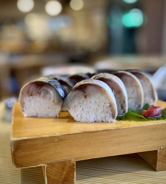 鯖に熱い情熱をかける谷口板長が長年の試行錯誤により完成させた虎鯖棒寿司、日本酒で食べると旨さが引き立ちます。