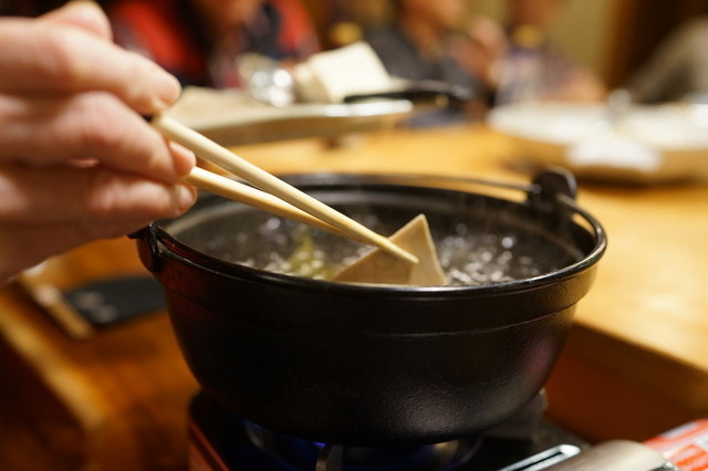 八戸・長横町れんさ街にある「小料理」店。居酒屋探訪家の著作に「女優のCMに撮影協力」、「女優型美人」のママさんと紹介されており、八戸訪問の目的地に致しました。赤い暖簾を潜りますとコージーな空間があり、予め箸の置かれた席に案内されます。作者に寄せて熱燗を頂きます。お通しは野菜でヘルシー。味付けは洋風。大皿料理から「茄子の煮物」を頼み、著作紹介の「かっけ」を打診。「かっけ」は卓上コンロが用意され、鉄鍋...