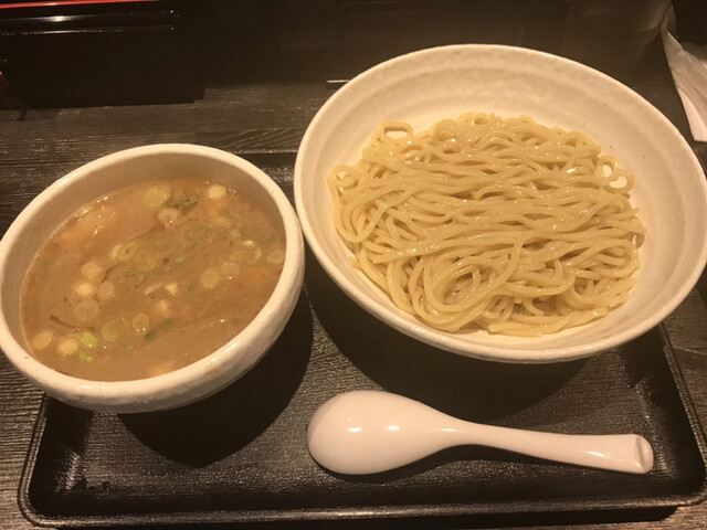 行った日は、店内はほぼ満席で、食べてる間は待ちが出来てました。カウンター席に座ってメニューを観ますが前のお店とあまり変化はないみたいですね。つけ麺を注文します。10分くらいでつけ麺が到着、なかなか濃厚そうなつけダレですね。