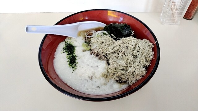 冷やし山かけそば650円にとろろ昆布100円追加でお願いしました。