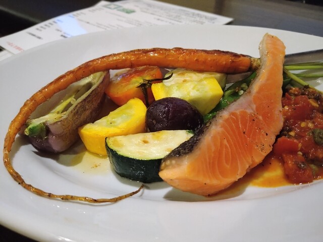 土曜日の12時に伺いました。予約は約1週間前に済ませておきました。到着時、店内には2組のお客さまがいらっしゃいました。なお、メニューや店内の撮影は不可とのことで、料理のみ写真を撮影しました。 前菜セットは、季節野菜のマリネとヴィーガンサラダにカシューナッツチーズを選択。メイン料理は、海峡サーモ... 詳細を見る