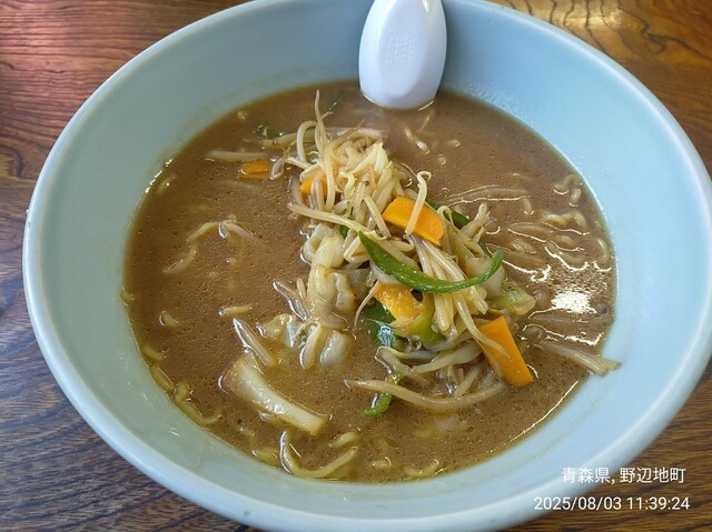 観光途中で伺いました。 8月2日天気晴れですが、エアコンのスィッチが入っていません。 天然エアコンで店内、暑いです。 味噌ラーメン700円をいただきました。 麺は中太ちぢれ... 詳細を見る