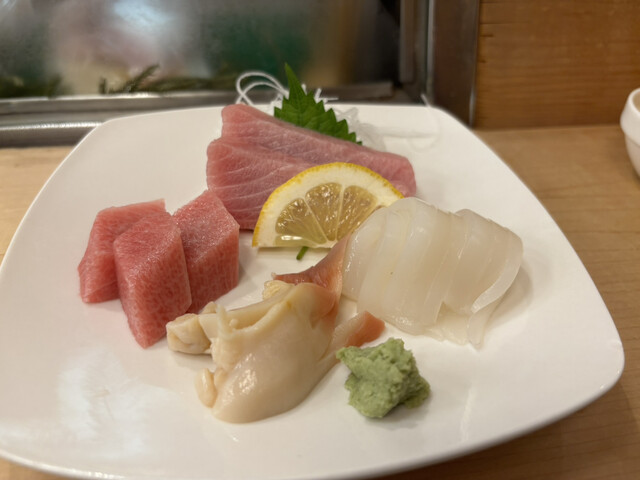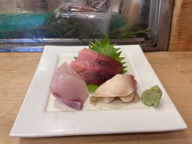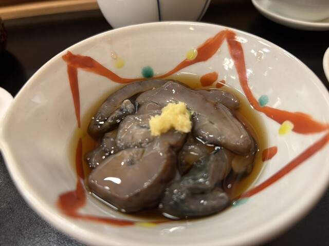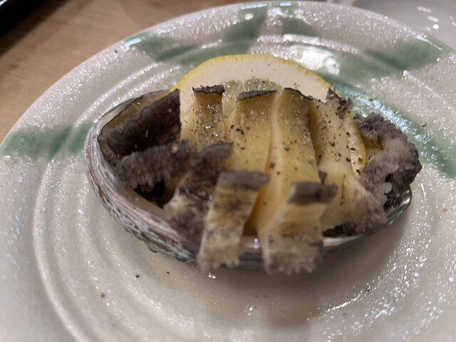 お祭りは、19:00から開催されます。 その前に、17:30に入店しました。 お通しは「白つぶ貝」です、コリコリとした食感の中に上品な甘みと旨味が溢れていました。 ... 詳細を見る