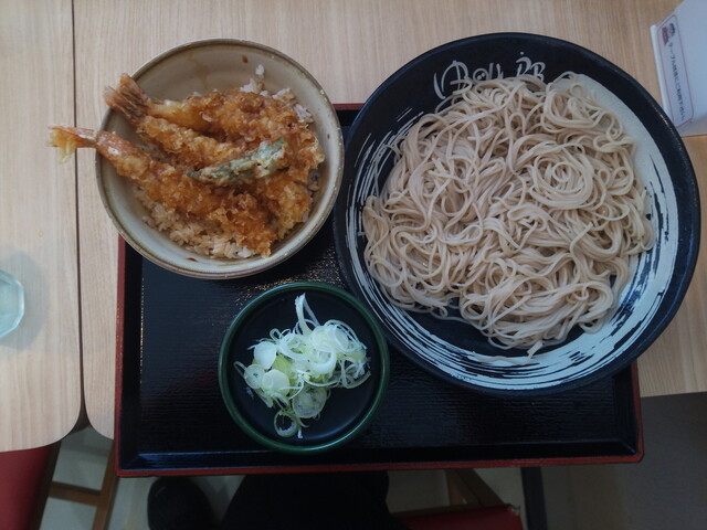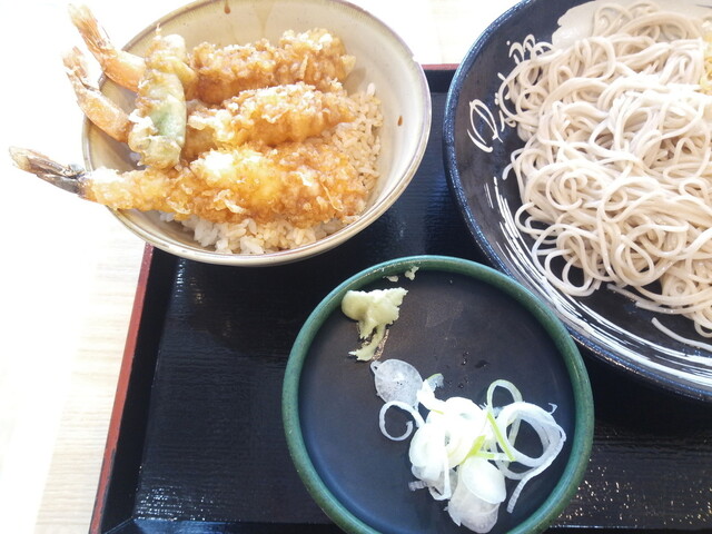 注文:セット ミニ三海老天丼 + 冷たいそば 860円