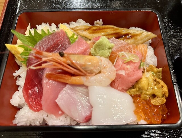 今回は「上ちらし寿司」を注文。注文から10分ほどで提供されました。見た目も華やかで、ネタの種類も豊富。まぐろやサーモン、白身魚、イクラ、玉子など、どのネタも新鮮でしっかりとした味わい。酢飯のバランスも良く、食べ進める手が止まりません。ネタ一つひとつの丁寧な仕事ぶりが感じられ、最後まで飽きることなく楽しめました。