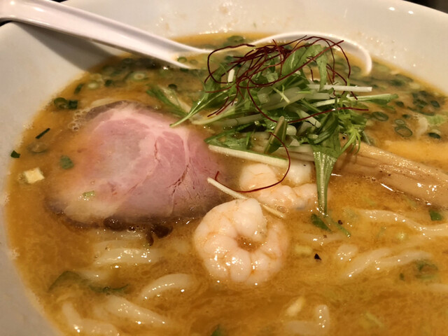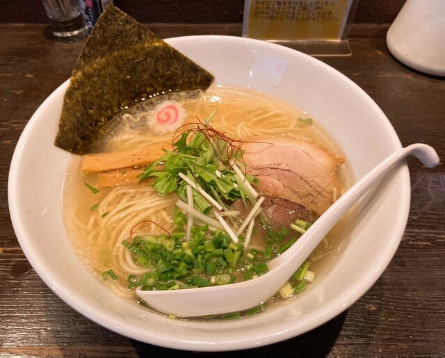 ★コクはあってもクセのない牛骨スープ★じっくり時間をかけて旨味を引き出す「黄金色の牛骨スープ」と「鰹節等の節系魚介スープ」更に、「北海道産昆布やフルーツ、野菜」のブレンドされたオリジナル性豊かならーめんです!! 海老の香りと旨味が詰まった芳醇「海老そば」やトッピングの鶏肉を昆布〆めするなどひと手間加えた「鶏そば」などぜひ試してみて下さい♪ なんといってもこのらーめん達のベースとなる千葉ではあまり食...べる事の出来ない牛骨!&魚介のWスープ 看板メニューは「極塩らーめん」。お酒を飲んだ後やご年配の方、女性やお子さんにもやさしいラーメンです。そして数あるサイドメニューの中でも「牛すじごはん」はそのままでも良し、スープをかけても良し、納得の味わいです。(*^_^*)