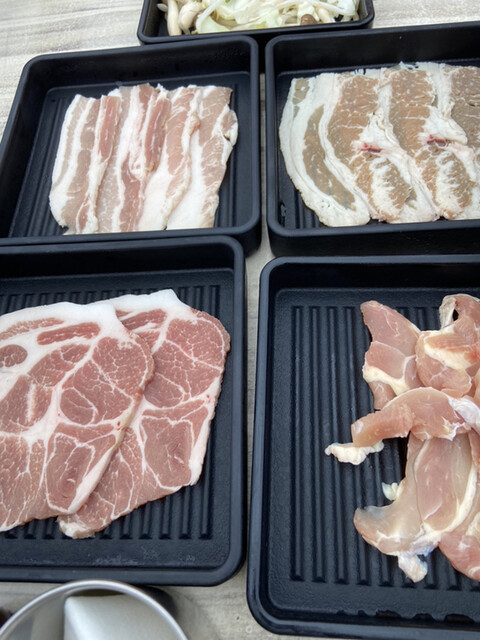 焼肉は、牛バラ、豚バラ、ロース、鳥もも肉のほか、ウインナーや焼きそば、フライド...