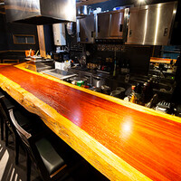 一枚板のカウンター9席◆細部まで工夫を凝らした大人の和空間
