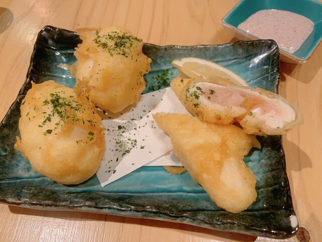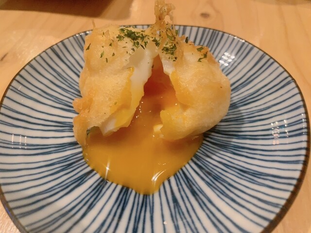 一応メニューには鶏料理が推しと書いてあったので頼んだ天ぷらが、どっちもかなりおいしかった!写真のとおり黄身がとろーり半熟で期待してなかったのにハイクオリティ。鶏ささみのしっとり具合も半端ない。添えてある柴漬けのタルタルソースが絶妙でした。