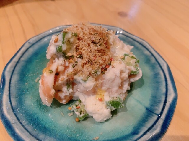 鶏ささみとおくらの梅チーズ和え