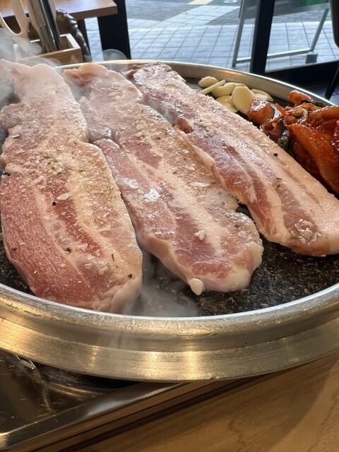 まずはお店の目玉商品、サムギョプサルとせいろポッサムのセットを注文。