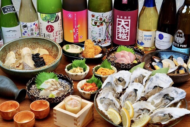 牡蠣や魚介と相性の良いお酒を取り揃え (by お店)