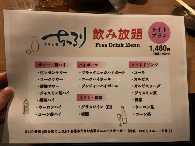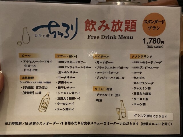 結局、腹パンにより追い牡蠣はできず…。飲み放題だと、最低でも2品(且つ、牡蠣、おでん以外)注文しなければならず、一人だとちょっと厳しかったので、今度はアラカルト注文にしようかな、とか考えて。腹のスペースさえあれば、たぶん10はいけるだろう…(未来の自分に期待)