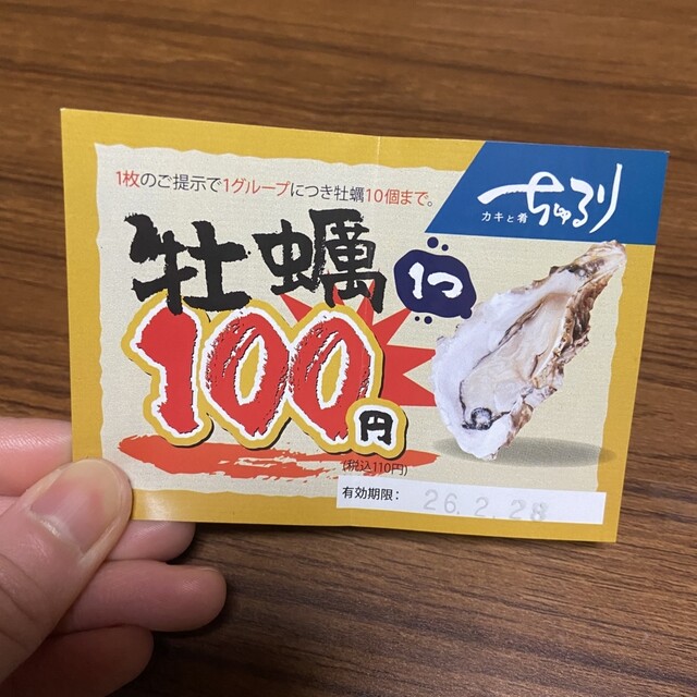 牡蠣クーポンは、一枚につき10個まで、¥100でいただけるみたいで、途中追加も可とのこと。初めは試しに、ということで6つ、いただきました。