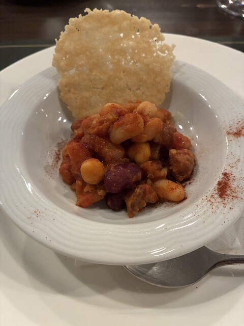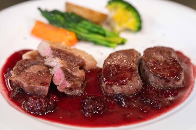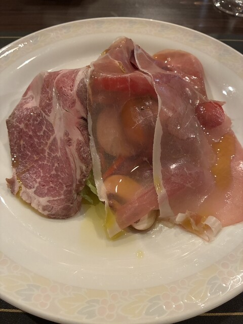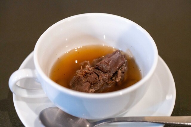 803文字★ ・ジビエ尽くしのコース(9,800円、内税)滞在時間:約1時間40分 1.国産飼育キジと千葉産鹿とフォアグラを鶏肉のムースでつないだテリーヌ 飼育ウサギのリエット サラダ添え 2.パン(カンパーニュ、バゲット、バター) 3.千葉産イノシシのバラ肉コンフィとフォアグラのソ... 詳細を見る