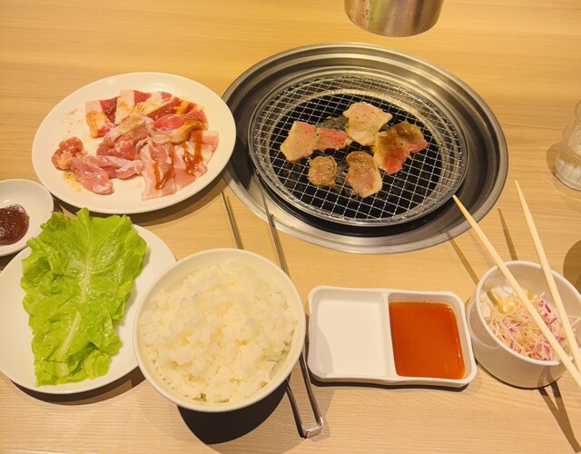 ランチで伺いました。牛肉、豚肉、鶏肉のセット+ライス大盛にサンチュを注文しました。意外と鶏肉に焼き時間を取られましたが、付属のレモンダレをつけるとあっさり美味しくいただきました。サンチュの枚数、もう少...