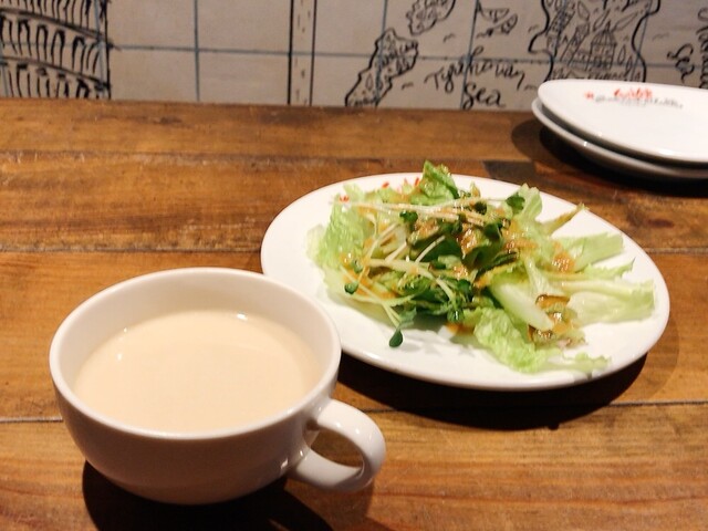 久しぶりに、真夜中のスパゲティをランチセットで(^ω^...