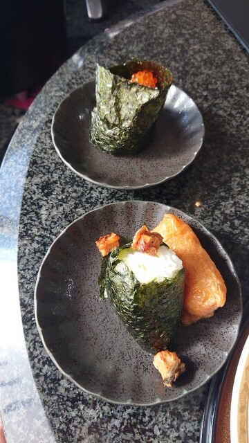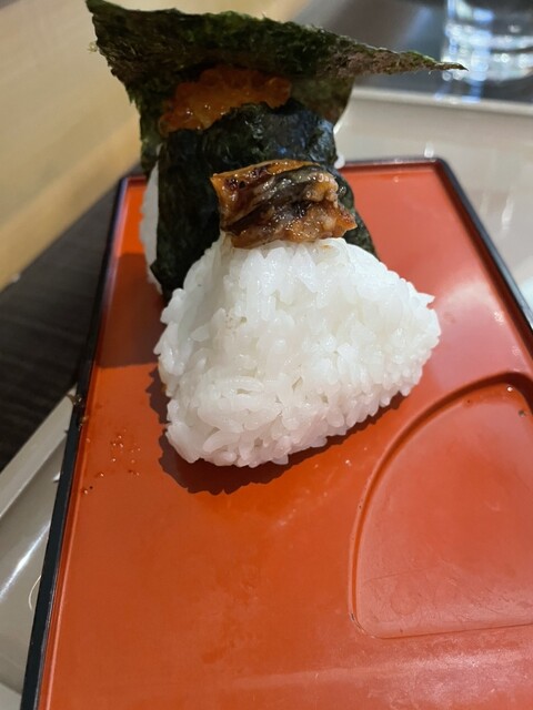 おにぎりとオムレツはその場で作ってもらえるので、いくらとうなぎのおにぎり、きのことハムの...