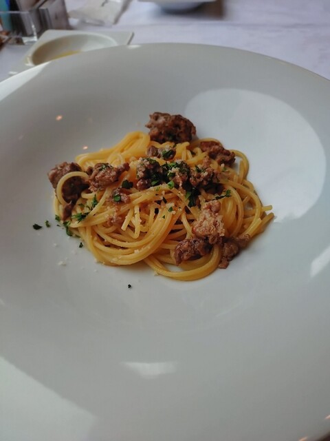 サラダ、アサリのパスタ、デザートにバニラアイス、レモンティーとシンプルなコースでしたが、素材の一つひと...