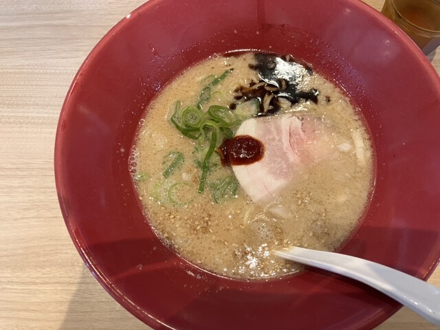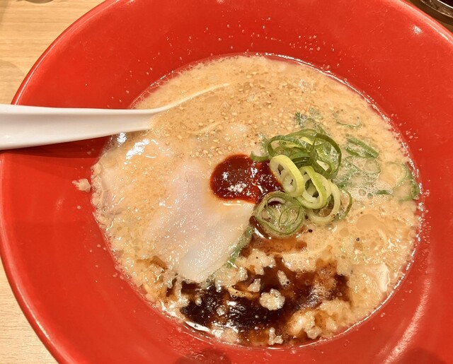 頼んだのは、赤丸のチャーシュー入り、あと博多餃子、妻は白丸の玉子入り、のちに替玉1人前。あわせて2770円。