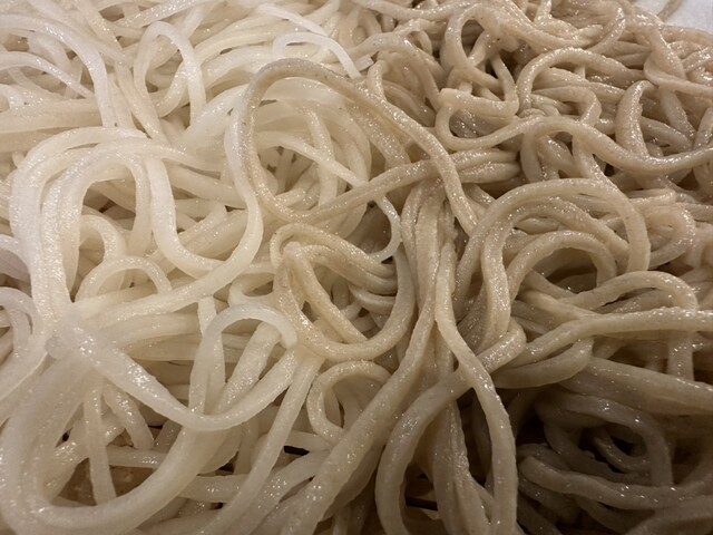 石臼で打った蕎麦の風味豊かな二八と蕎麦の実の芯で打った喉ごしよい更科のあいもりが旨い!