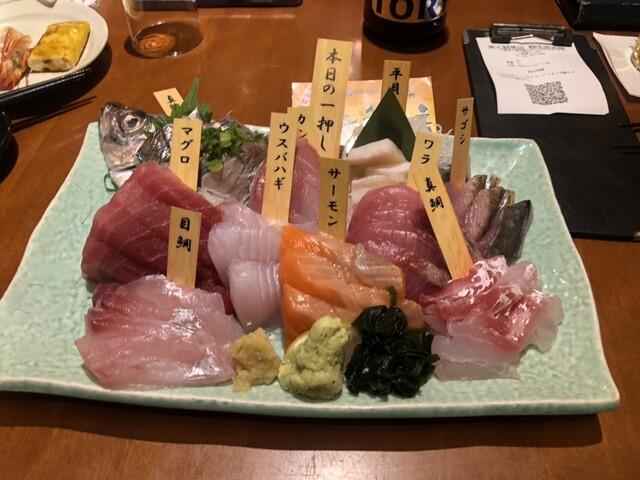 名物料理は、旬の鮮魚が満載の刺身盛り合わせ。生から揚げるアジフライ、ウニクリームコロッケ、旬野菜の月替わり料理も人気です。