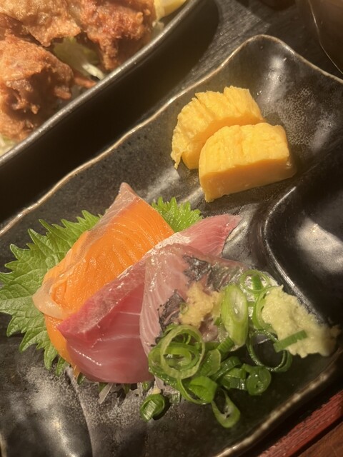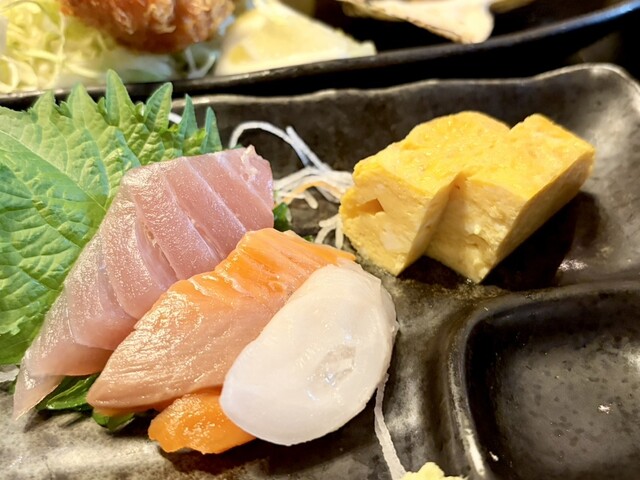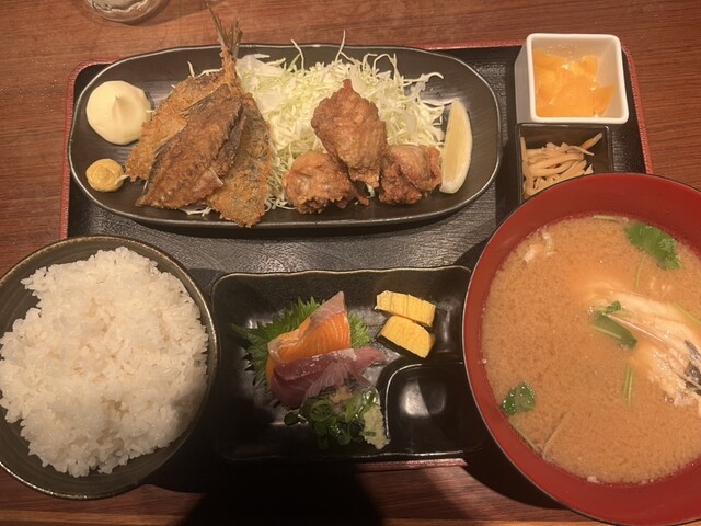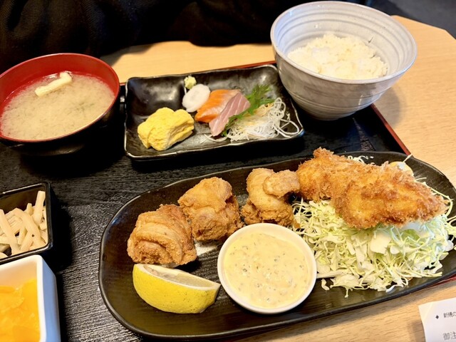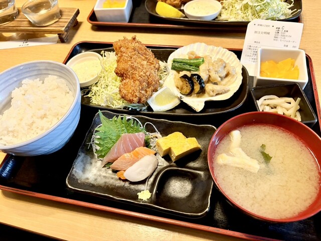 刺身やフライなどの定食と海鮮丼