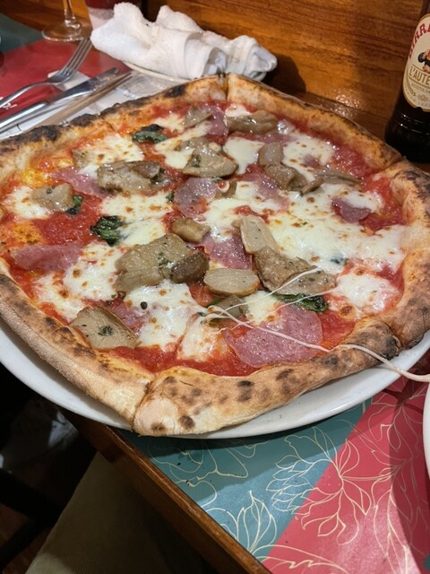クリスマス前のディナーに、家内が予約してくれました。十二種のイタリアンアペタイザーでワイン呑みながら、ピザ。ちなみに十二種アペタイザーはいろいろな種類が楽しめてとても良かったです♪