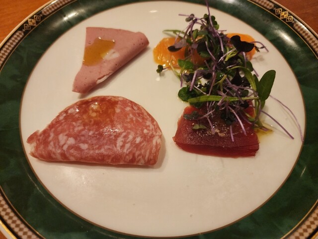 まずは前菜をいただきつつ、知人と近況報告。